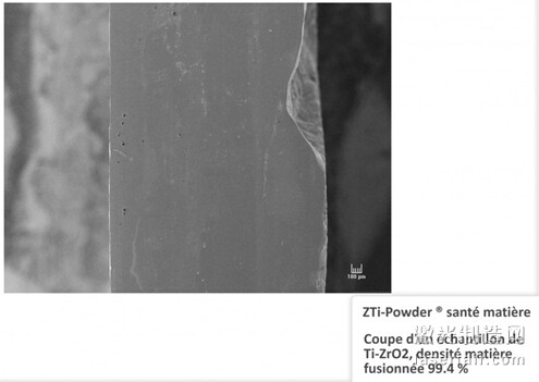據(jù)了解,這種材料混合物的最終產(chǎn)品形態(tài)是ZTI-粉末(ZTi-Powder),這是一種可用于選擇性激光熔融(SLM)技術(shù)的鈦-陶瓷組合材料。鈦的延展性與氧化鋯的硬化性質(zhì)混合所形成的這種輕便、堅(jiān)韌的金屬類(lèi)粉末足以承受超過(guò)1000攝氏度的熱量。要知道,鈦和鋯這兩種元素彼此極為互補(bǔ),這不僅是因?yàn)樗鼈兌及烊坏难诱剐?,而且它們各自的弱點(diǎn)都恰好被對(duì)方所補(bǔ)充。比如鈦的強(qiáng)度很高,但是很不耐磨;而鋯則相反,耐磨、耐腐蝕是它的強(qiáng)項(xiàng),而強(qiáng)度則是其弱點(diǎn)。另外,氧化鋯是一種理想的陶瓷原料。