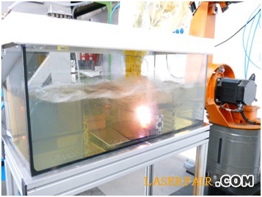 Captionfigure 1: Underwater laser cutting is a fast and thus economical alternative to conventional processes. (Photo:LZH)