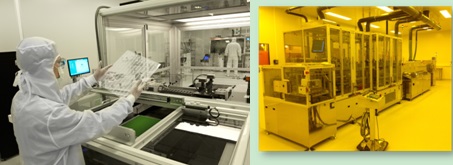 Large area electronics comes from the dimensions of the substrate used for deposition of the semiconductor materials : ISORG products will be based on 66cm x 66cm plastic foils in mass production.