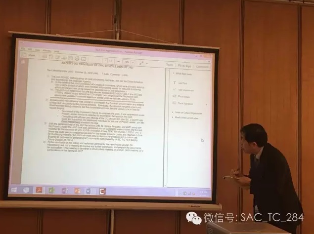 WG3 convenor Mr. Sheldon Zimmerman could not attend the meeting, but he participated in the whole meeting through web telephone. The meeting was organized by WG3 secretary, Ms. Anna-Karin Homer, who comes from Sweden. Everybody made a brief introduction firstly and approved the meeting agenda.Hereafter, the meeting went smoothly according to the agenda. The revision process of Ed.3 had been identified firstly, and the final version would be published in 2018; the CD document was going to be completed in 2017 and then circulated for comments.