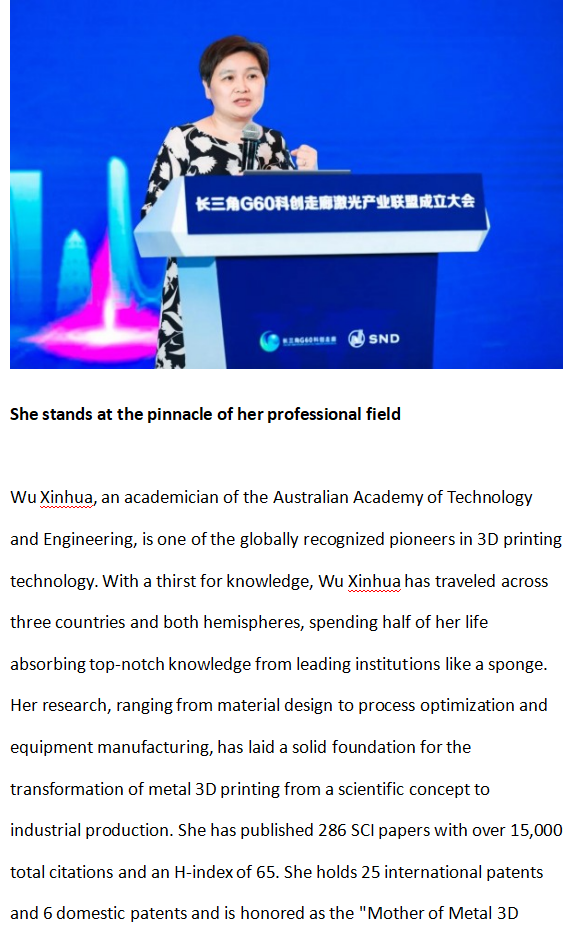 At the invitation of Soochow University, Xinhua Wu, a world-renowned 3D printing expert and academician, has joined the School of Steel Science and Technology at Soochow University as a chair professor and doctoral supervisor on a full-time basis. He has also established the Institute of metal Materials and Intelligent Manufacturing. The institute adheres to the development concept of "science leadership, technological innovation, and achievement transformation" in a trinity, and is committed to the full industrial chain layout from basic research to equipment application, striving to build an international benchmark in the field of metal 3D printing.