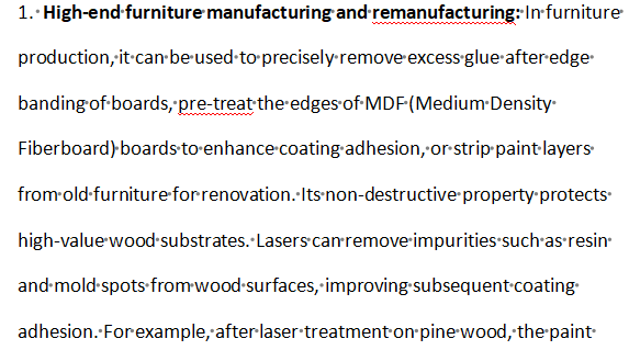 Leveraging its technical advantages, laser cleaning has demonstrated huge application potential in multiple sub-segments of the wood products industry. Application scenarios are as follows:
