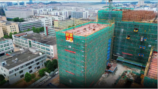 At 09:45 on November 13, 2025, in Dongcheng Sub-district, Dongguan, with the last batch of concrete poured in place, the Glorystar Laser Headquarters and Capacity Expansion Project achieved the topping-out of its first main building.