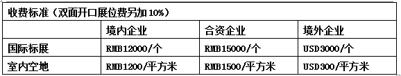1  3mx3m國(guó)際標(biāo)準(zhǔn)展位包括三面圍板、楣板、一桌兩椅、兩盞射燈、220v電源插座(其他展具及服務(wù)產(chǎn)生的費(fèi)用由客商自理)
