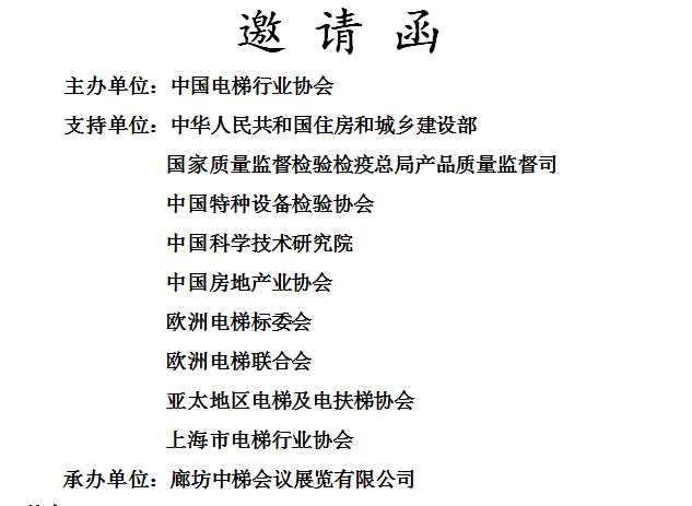 1.重點(diǎn)邀請各省市電梯行業(yè)協(xié)會(huì)、住房和城鄉(xiāng)建設(shè)廳、全國建筑設(shè)計(jì)院、全國房地產(chǎn)開發(fā)