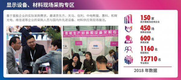 基于面板企業(yè)的實(shí)際采購需求,邀請京東方、天馬、信利、中電熊貓、惠科、和輝光電、維信諾等企業(yè)的采購人員與國內(nèi)外先進(jìn)設(shè)備、材料供應(yīng)商現(xiàn)場接洽。
