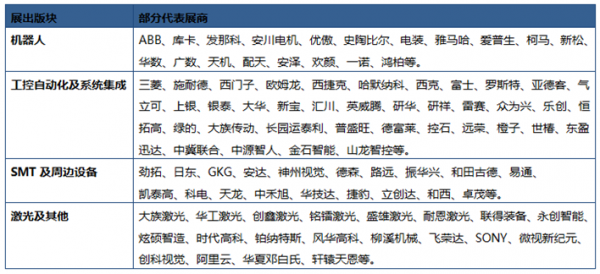 其他重點(diǎn)新推設(shè)備:半導(dǎo)體精密加工設(shè)備、3D玻璃加工設(shè)備、液晶平板相關(guān)設(shè)備、視覺軟件及檢測設(shè)備、線路板生產(chǎn)相關(guān)設(shè)備、新能源裝備、包裝設(shè)備、立體倉庫智能倉儲(chǔ)