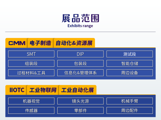 CMM 2022展品內(nèi)容將全面覆蓋從設(shè)備到周邊部件,從應(yīng)用軟件到信息技術(shù),形成SMT、DIP、測(cè)試段、組裝段、包裝段、智能倉(cāng)儲(chǔ)、周邊設(shè)備、芯片半導(dǎo)體、自動(dòng)化部件、過程材料及工具、制造環(huán)境、信息化及管理體系共十二大應(yīng)用領(lǐng)域,串聯(lián)自動(dòng)化部件,生產(chǎn)設(shè)備,制造環(huán)境,信息技術(shù)產(chǎn)業(yè)上下游打造智能制造行業(yè)一站式展示平臺(tái)。