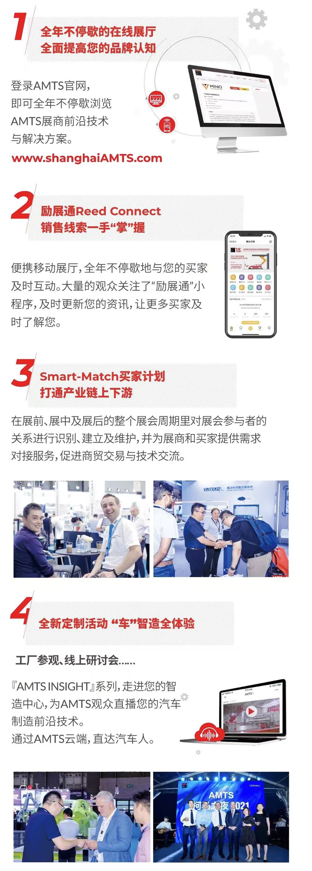 AMTS將通過行業(yè)生態(tài)圈、技術(shù)峰會、微型展、全球巡展、線下沙龍、線上展廳、線上研討會及其他更多定制化商務(wù)活動。以全新的活動形式,為汽車人建立一站式360°的商務(wù)平臺。