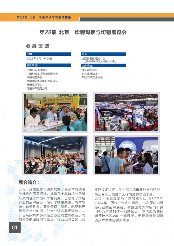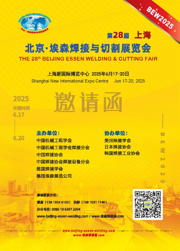 • 主辦單位:中國(guó)機(jī)械工程學(xué)會(huì) 中國(guó)機(jī)械工程學(xué)會(huì)焊接分會(huì) 中國(guó)焊接協(xié)會(huì) 中國(guó)焊接協(xié)會(huì)焊接設(shè)備分會(huì) 德國(guó)焊接學(xué)會(huì) 德國(guó)埃森展覽公司