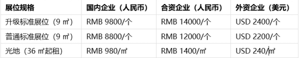 【展位規(guī)格及租金】