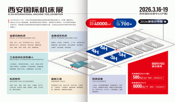 2026年3月16-19日,CMES華機(jī)展|西安國際機(jī)床展在西安國際會展中心(浐灞)重磅舉辦。展會以40000㎡展覽規(guī)模,重點聚焦航空航天零部件、新能源汽車零部件、電子零部件等重點應(yīng)用行業(yè),現(xiàn)場展示應(yīng)用端創(chuàng)新機(jī)床設(shè)備及先進(jìn)解決方案,為機(jī)床企業(yè)布局中西部市場開創(chuàng)戰(zhàn)略窗口。