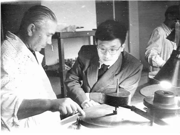 潘君驊(右)留學(xué)蘇聯(lián)時(shí)在光學(xué)工廠實(shí)習(xí)磨鏡片(圖片來源于清華大學(xué)校史館)