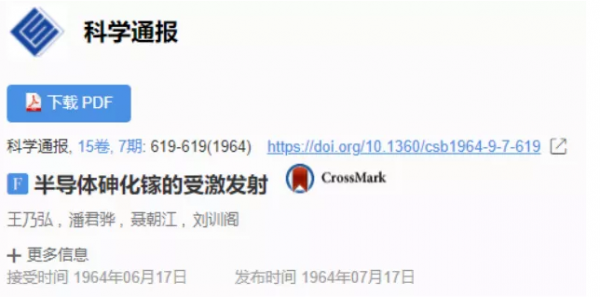開始時(shí)一直不出激光,王乃弘很著急,就想了一個(gè)點(diǎn)子,要用非受激發(fā)光元件做光電話的通話試驗(yàn),主要的硬件工作都由我來做。最后我們用120口徑的系統(tǒng)做到50公里距離的通話,從十幾公里,二十幾公里再做到50公里通話,這個(gè)距離差不多是極限了。1964年4月份左右,我們早于北京半導(dǎo)體所,首先出來了激光。7月份《科學(xué)通報(bào)》就把我起草的一篇稿子發(fā)表了。北京半導(dǎo)體所說他們的激光出來得早,這點(diǎn)我不能完全否定,可是確實(shí)沒有文章能作為依據(jù)。