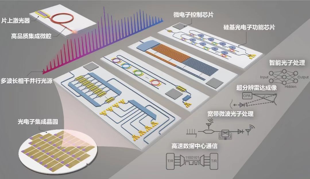 集成微腔光梳驅(qū)動的硅基集成光電子片上系統(tǒng)圖