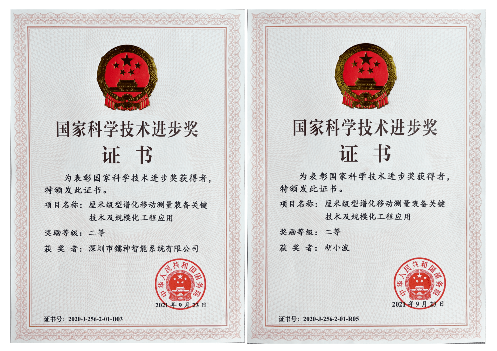 鐳神智能“厘米級型譜化移動測量裝備關(guān)鍵技術(shù)及規(guī)?;こ虘?yīng)用”榮獲國家科技進(jìn)步獎二等獎。