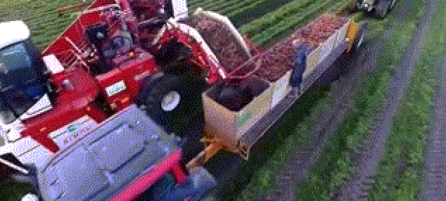▲胡蘿卜收獲機(jī)械,收割的胡蘿卜通過(guò)傳送帶運(yùn)到卡車?yán)?/span>