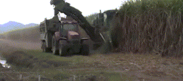▲玉米收獲機(jī)械,收割的玉米通過(guò)傳送帶運(yùn)到卡車?yán)?/span>