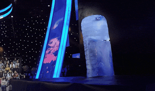 ▲擊爆氣球的“極速射擊”展示結(jié)束后,“利刃出擊”的挑戰(zhàn)環(huán)節(jié),距離“激光大炮”15米遠(yuǎn)的冰柱不到90秒就被“攔腰截?cái)唷薄?