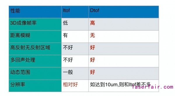 下表是Itof和Dtof的優(yōu)缺點(diǎn)比較,從表中可以看到,Dtof的優(yōu)勢還是很明顯的,關(guān)鍵參數(shù)上只有分辨率略差,不過這次蘋果的使用的sensor上突破可能扭轉(zhuǎn)這個局面.
