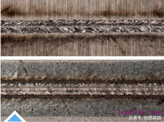 使用不同的金屬和合金制造產(chǎn)品的能力大大提高了設(shè)計(jì)和生產(chǎn)的靈活性。在控制成本的同時(shí),優(yōu)化成品的性能,例如腐蝕、磨損和耐熱性,是進(jìn)行異種金屬焊接的普遍動(dòng)機(jī)。連接不銹鋼和鍍鋅鋼就是一個(gè)例子。由于其出色的耐腐蝕性,304不銹鋼和鍍鋅碳鋼已廣泛應(yīng)用于各種應(yīng)用,例如廚房用具和航空部件。該工藝提出了一些特殊的挑戰(zhàn),特別是因?yàn)殇\涂層會(huì)帶來嚴(yán)重的焊縫孔隙問題。在焊接過程中,熔化鋼和不銹鋼的能量會(huì)在大約900攝氏度下蒸發(fā)鋅,這大大低于不銹鋼的熔點(diǎn)。鋅的低沸點(diǎn)導(dǎo)致在鎖孔焊接過程中形成蒸汽。在試圖逸出熔融金屬時(shí),鋅蒸氣可能會(huì)滯留在凝固的焊縫中,從而導(dǎo)致焊縫孔隙率過大。在某些情況下,鋅蒸氣會(huì)隨著金屬的凝固而逸出,從而在焊接表面形成氣孔或粗糙度。通過適當(dāng)?shù)慕宇^設(shè)計(jì)和激光工藝參數(shù)的選擇,可以輕松進(jìn)行整飾和機(jī)械焊接。厚度為0.6毫米的304不銹鋼和厚度為0.5毫米的鍍鋅鋼的搭接焊縫的上表面和下表面均無裂紋或氣孔。