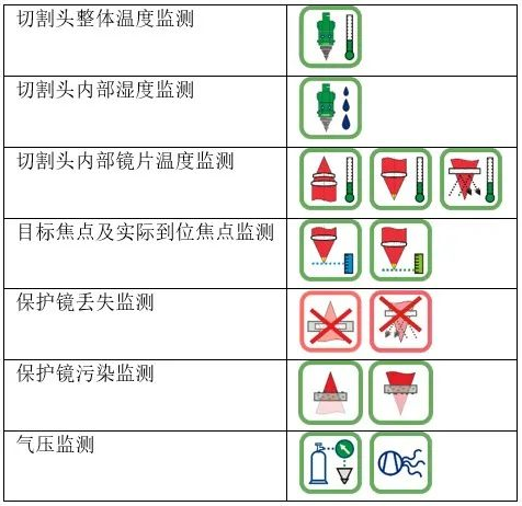通常切割質(zhì)量會受到鏡片溫度(導致焦點漂移)、鏡片污染(導致光束質(zhì)量變差)、切割氣壓、高度跟蹤等因素的影響。通過對這些數(shù)據(jù)進行實時監(jiān)控,可以掌握切割頭的工作狀態(tài),進行切割參數(shù)的閉環(huán)控制,根據(jù)控制策略實時優(yōu)化調(diào)整,以獲取持續(xù)穩(wěn)定的切割質(zhì)量。通過以上內(nèi)置傳感器的閾值設置和算法優(yōu)化,實現(xiàn)提前預警或故障停機,以避免造成更大損失。