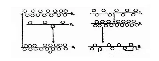 原子(或分子、離子)總是力圖使自己的能量狀態(tài)處于基態(tài)上,被激發(fā)到高能級(jí)后的粒子,力圖回到基態(tài)上去,與此同時(shí)放出激發(fā)時(shí)所吸收的能量?;鶓B(tài)是粒子能量最平衡最穩(wěn)定的狀態(tài),從高級(jí)回到低能級(jí)去的過程稱為躍遷,躍遷時(shí)釋放的能量即輻射。躍遷的形式有以下幾種: