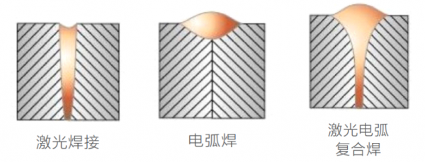 圖2.分別是激光焊接,電弧焊和激光電弧復(fù)合焊期間焊縫的形成模式