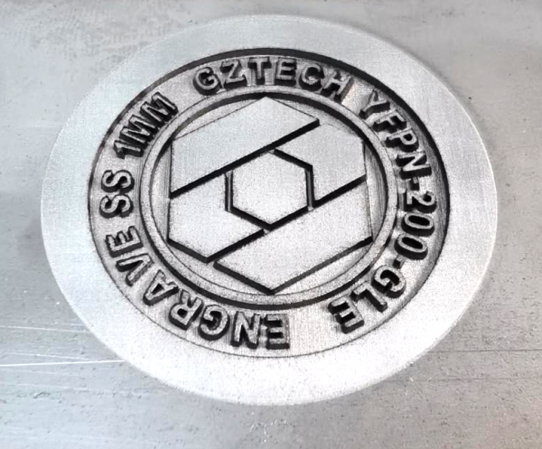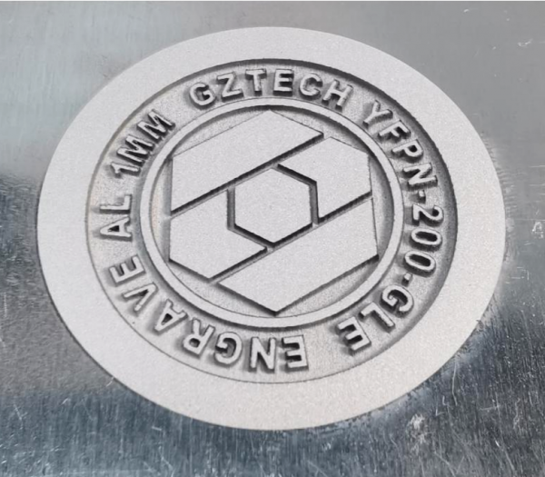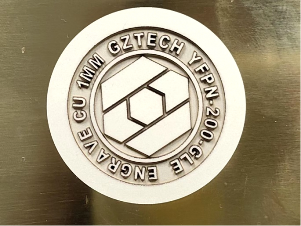 不銹鋼是金屬制品中使用最多的材料之一,在不銹鋼上雕刻一定深度的字符或者圖案的需求非常之多。經(jīng)測試,GLE 200W使用頻率190kHz,功率90%,速度2000mm/s,填充間距0.05mm,正離焦0.5mm,雕刻1mm深成品表面毛刺少,底紋細膩,深度均勻,去除效率40mm3/min。