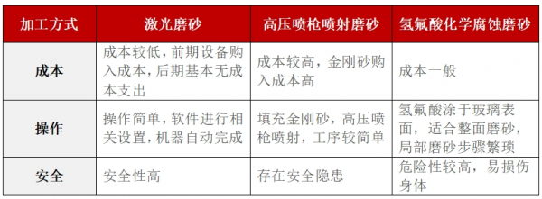 02、激光玻璃磨砂工藝與傳統(tǒng)噴砂工藝的對比
