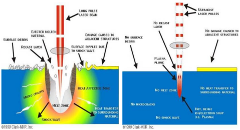 圖5 納秒和超快激光與材料作用機(jī)理對比