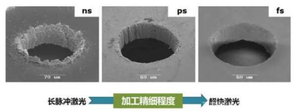 圖7 不同脈寬激光器鉆孔效果(資料來源:松山湖材料實(shí)驗(yàn)室)