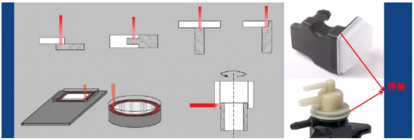 (4)激光焊接——激光焊接技術是借助激光束產(chǎn)生的熱量使塑料接觸面熔化,進而將熱塑性片材、薄膜或模塑零部件粘結(jié)在一起的技術。