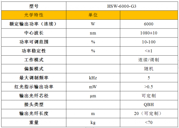 表2.1 大族光子6000W激光器技術參數