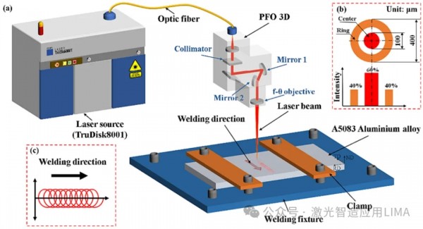 近年來開發(fā)了一種可調(diào)環(huán)模型(ARM)激光器,將激光能量分為高能量密度的芯和低能量密度的環(huán),用于穩(wěn)定鎖孔和提高焊接質(zhì)量。研究人員采用ARM激光振蕩焊接在不同的芯/環(huán)功率比和振蕩寬度下焊接6xxx高強(qiáng)度鋁合金。實(shí)驗(yàn)結(jié)果表明,影響焊縫幾何形狀的主要因素是振蕩寬度,而不是芯環(huán)功率比。然而,振蕩和ARM激光疊加作用下的孔隙分布及其抑制機(jī)理尚未得到研究。本文采用一種新型的ARM激光振蕩焊接技術(shù),降低了焊縫的孔隙率,獲得了更高的熔深和更好的焊縫質(zhì)量。在不同振蕩頻率和振幅下,對(duì)激光能量分布、熔池動(dòng)態(tài)行為和顯微組織進(jìn)行了全面研究。