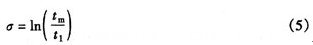 式中t1是累積失效率為16(精確值為15.87)時(shí)對(duì)應(yīng)的時(shí)間。代人數(shù)據(jù)計(jì)算得出σ=1.1。