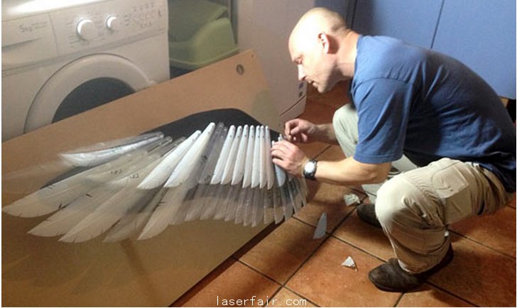 于是Masters于2004年創(chuàng)建了一個(gè)真人大小體態(tài)優(yōu)美的女性,但是在她的翅膀的制作上,Masters一直沒有找到合適的技術(shù)制造出能夠體現(xiàn)現(xiàn)代科技結(jié)晶的翅膀。直到今年早些時(shí)候,兩人才確定使用3D打印技術(shù),于是與一家名為Industrial Plastic Fabrications(IPF)的3D打印公司合作,為這個(gè)等待了9年的作品制作金屬羽毛。
