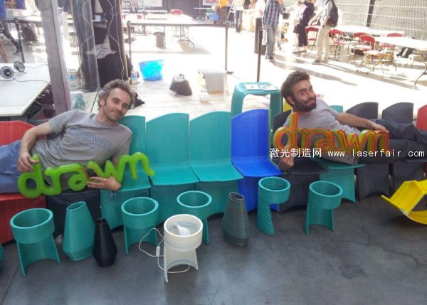 前日在法國巴黎舉行的創(chuàng)客展示集會“制匯節(jié)”上,一家初創(chuàng)公司Drawn就展示出了他們自己研制的家具3D打印機(jī)和一些色彩獨特的家具。