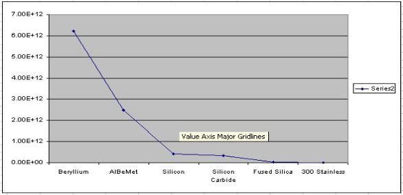 由圖可看出,鈹是優(yōu)于其他鏡面基板使用的材料,但在加工過程中會產(chǎn)生毒性粉塵對人體造成危害,因此使用它還是相當(dāng)具有挑戰(zhàn)性的,但是目前已經(jīng)有一些掃描器廠家開始使用以鈹作為基板的反射鏡,應(yīng)用于超快速的掃描器中。另外碳化硅的剛性和導(dǎo)熱性也比較適合作為反射鏡基板材料,但加工工藝也較為復(fù)雜,因此目前我們還是較多的在使用硅和熔融二氧化硅制作鏡面基板。
