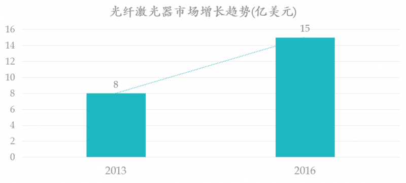 2016年全球光纖激光器市場(chǎng)突破百億,中國市場(chǎng)占47億元。