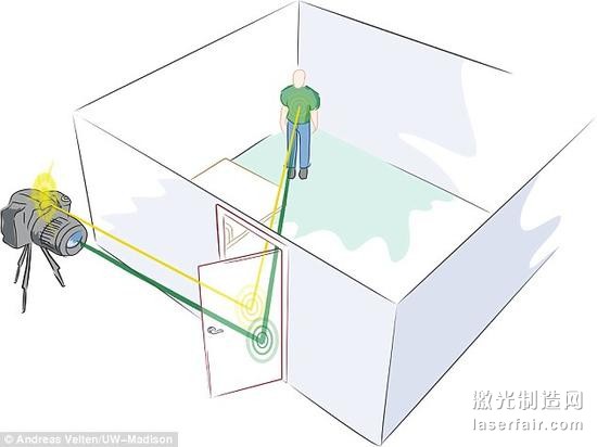 在為美國宇航局開發(fā)的這項成像技術(shù)中,使用了可以被看不見物體散射的激光脈沖,利用被散射的激光脈沖,科學(xué)家可以重建這項看不見的物體成像。它能夠如圖中所示一樣高效地實現(xiàn)全方位探索,黃線是激光脈沖,綠光則是反射光線。...