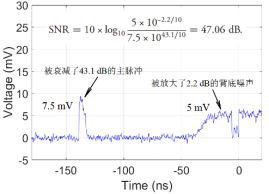 該課題組基于單縱模長脈沖削波整形方法和納秒毫焦耳級(jí)釹玻璃再生激光放大技術(shù),詳細(xì)研究了激光注入系統(tǒng)的噪聲來源(圖1為激光注入系統(tǒng)輸出的時(shí)域波形),并探討了噪聲對(duì)高功率激光裝置的影響。