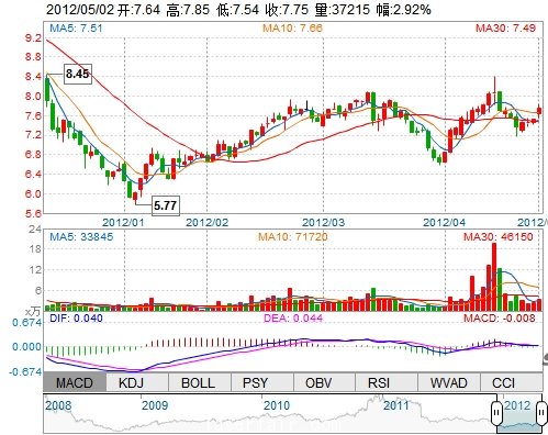 | 今 開: | 7.64 | 成交量: | 37215手 | 振 幅: | 4.12% |