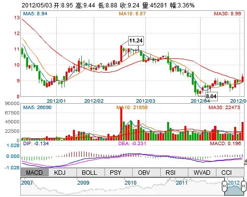 今 開: 8.95 成交量: 45281手 振 幅: 6.26%