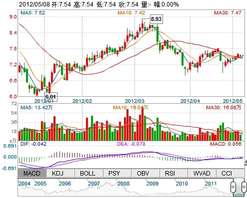 昨 收: 7.54 流通市值: 71.34億 市盈率TTM: 22.96