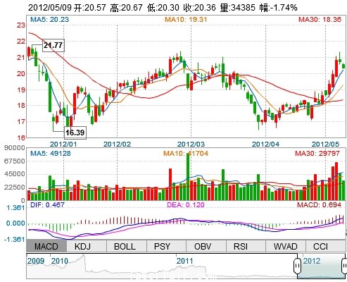 今 開: 20.57 成交量: 34385手 振 幅: 1.79% 最 高: 20.67 成交額: 7026.80萬 換手率: 1.68% 最 低: 20.30 總市值: 60.60億 市凈率: 4.99 昨 收: 20.72 流通...