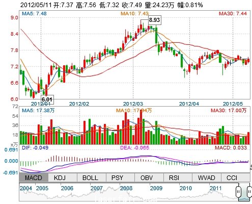 今 開(kāi): 7.37 成交量: 242268手 振 幅: 3.23% 最 高: 7.56 成交額: 18160.78萬(wàn) 換手率: 2.56% 最 低: 7.32 總市值: 78.23億 市凈率: 2.63 昨 收: 7.43 流通市...