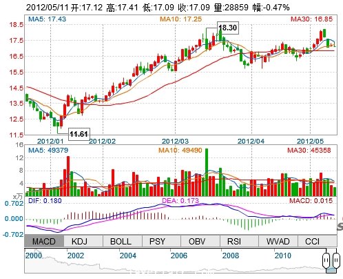 今 開: 17.12 成交量: 28858手 振 幅: 1.86% 最 高: 17.41 成交額: 4973.93萬 換手率: 0.71% 最 低: 17.09 總市值: 76.15億 市凈率: 2.89 昨 收: 17.17 流通...