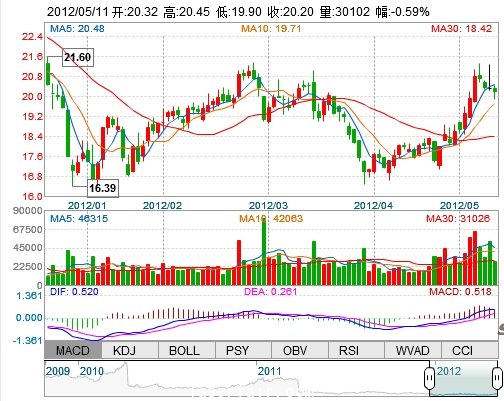 今 開: 20.32 成交量: 30102手 振 幅: 2.71% 最 高: 20.45 成交額: 6069.22萬 換手率: 1.47% 最 低: 19.90 總市值: 60.13億 市凈率: 4.95 昨 收: 20.32 流通...