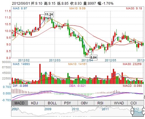 今 開: 9.10 成交量: 8997手 振 幅: 3.30% 最 高: 9.15 成交額: 810.52萬 換手率: 0.46% 最 低: 8.85 總市值: 17.79億 市凈率: 3.69 昨 收: 9.09 流通市值: ...